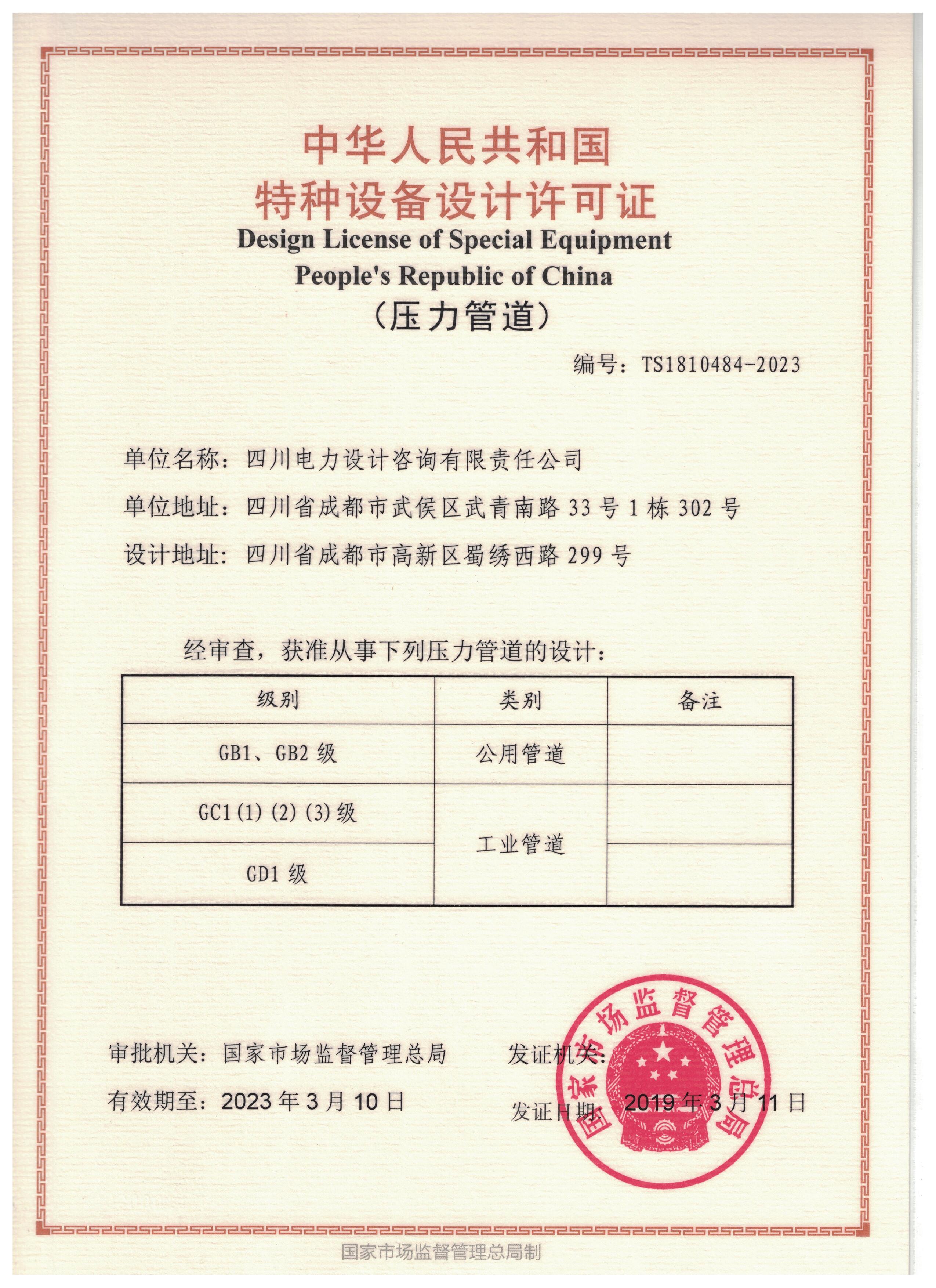 壓力管道資質證書